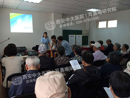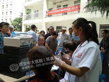 活动邀请到西安中大耳鼻喉医院部分名医进社区进行义诊便民服务活动,并为居民进行免费的耳鼻喉内窥镜检查。居民们可从内窥镜的显示器上,清楚的看到自己鼻腔内、耳朵内或者咽喉部疾病病症所在。随后,中大医务人员还为居民们建立健康档案。